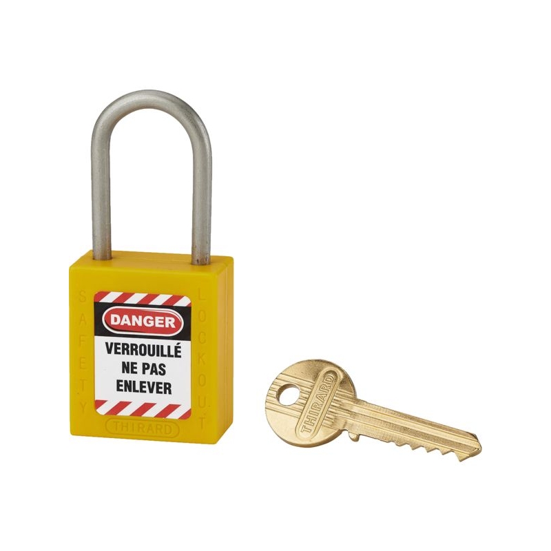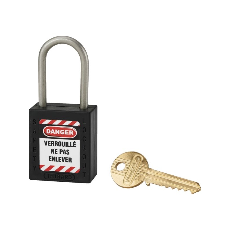 Corps ABS non conducteur avec anse en acier inoxydable. Double ancrage. Livré avec 1 clé. Fonction clé prisonnière. Corps (L x H) : 38 x 44 mm Conditionnement : boite Environnement ATEX.