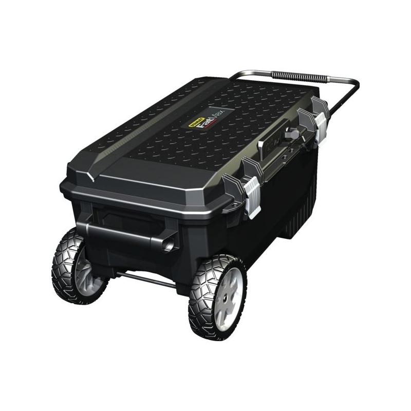 En polypropylène. Attaches métalliques anticorrosion et serrure à clés. Roues grand diamètre tout terrain, poignée télescopique bi-matière. Rainure en V pour des découpes d'appoint. Nombreux rangements verticaux et plateau porte-outils intégré. Etanche à l'eau et à la poussière (IP54). Volume utile : 113 l Dimensions : 910 x 520 x 430 mm. Livré sans outils.