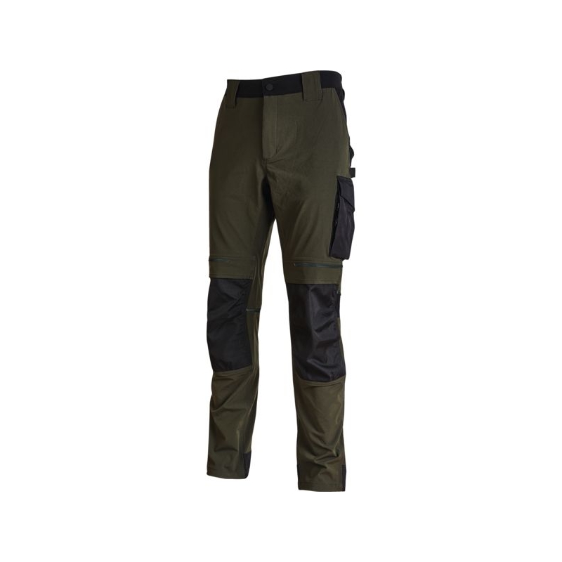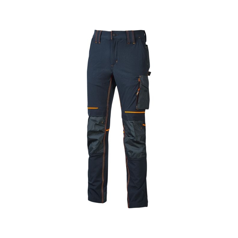 90% nylon, 10% spandex, 260 gr/m2. Tissu stretch, doux au toucher, déperlant, respirant, séchage rapide. Taille élastiquée, bavette à l’arrière pour une meilleure protection lombaire. Poches latérales porte-outils, multifonction avec porte badge rétractable, 2 poches arrières, poches zippées sous une grande poche latérale. Emplacements pour genouillères réf. 103541 (à commander séparément). Bas de pantalon entièrement renforcé en polyoxford 600D. Coloris : noir/jaune, marine/orange Taille : M à 2XL Norme :